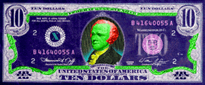 "A square meal, don't you think?""This guy wasn't a president either." and he slides the top half of Alexander Hamilton's head on a dessert plate in front of you."